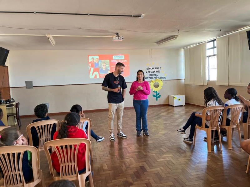 No dia 03, falemos sobre “Tempo de Telas” com crianças e adolescentes - um tema essencial! - Cuidar do uso equilibrado dos aparelhos eletrônicos ajuda na saúde física, mental e social, evitando cansaço, distração e isolamento. Durante esta semana, na oficina Enter@ção na Era Digital, nossos educandos refletiram sobre esse tema: fizeram pesquisas, assistiram a vídeos, leram textos e artigos… e depois deixaram os aparelhos de lado para se divertir na quadra. Descobriram que existem muitos lugares onde é possível aproveitar sem precisar de telas: nas igrejas, nos passeios com a família, nas refeições, na biblioteca e em tantos outros espaços que promovem convivência, aprendizado e momentos de paz. Aproveitamos também para assistir à oficina de música, pois a música é uma grande aliada da saúde mental. Passamos pelos espaços encantados da Casa da Alegria - brinquedoteca, parquinhos, oficinas e capela.